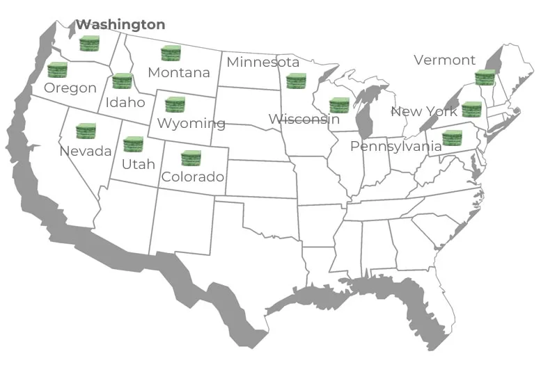 Timothy hay is grown in several regions across the United States. The primary production areas include the Pacific Northwest (Washington, Oregon, Idaho), Intermountain West (Utah, Nevada, Wyoming), Northeast (New York, Vermont, Pennsylvania), Upper Midwest (Minnesota, Wisconsin), and Mountain West (Colorado, Montana). These regions offer a combination of suitable climates, fertile soils, and proper irrigation for successful Timothy hay cultivation.